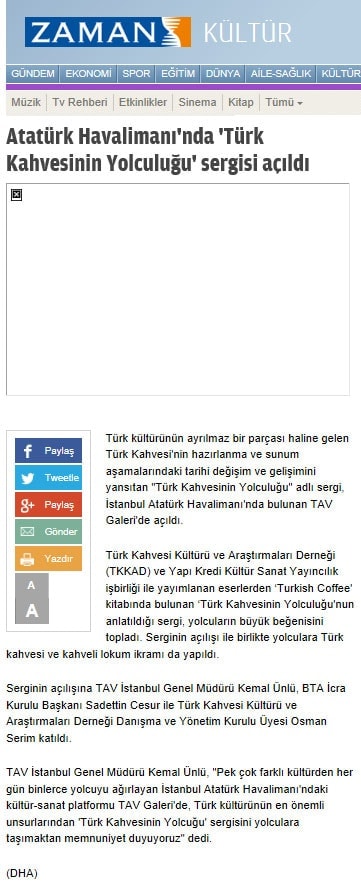 Atatürk Havalimanında Türk Kahvesinin Yolculuğu sergisi açıldı - 20 Kasım 2013 - Zaman