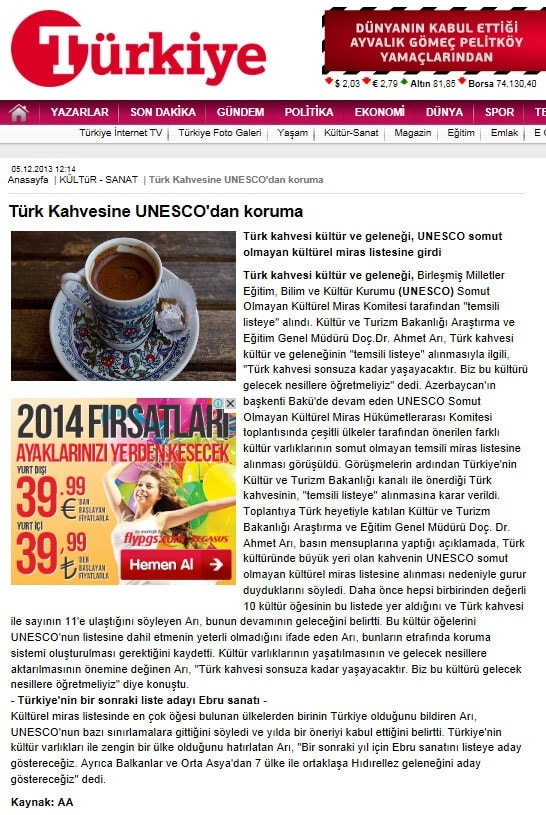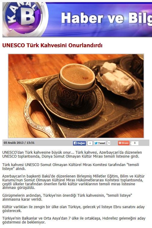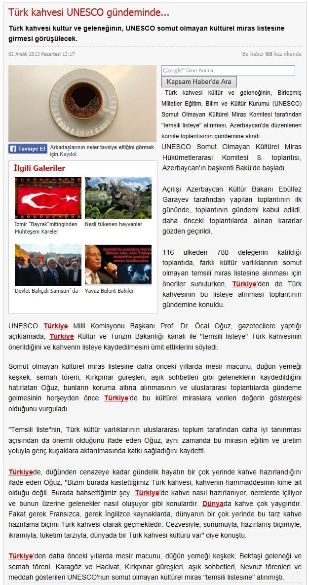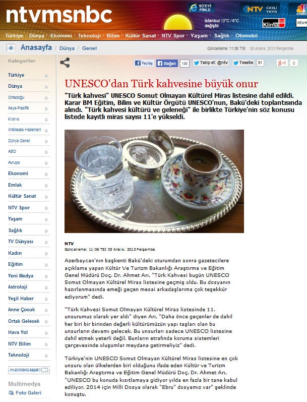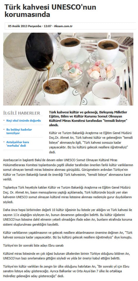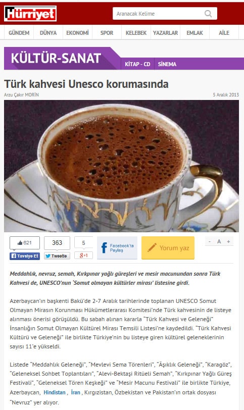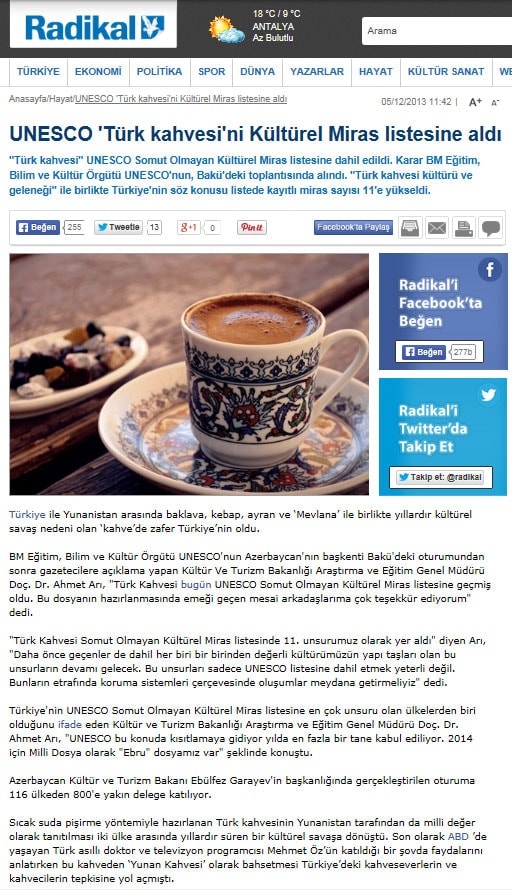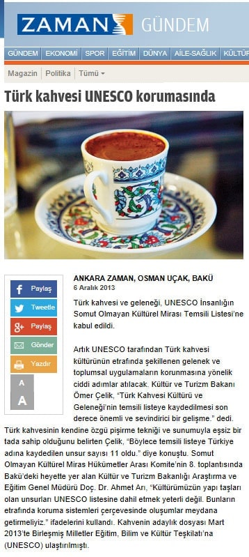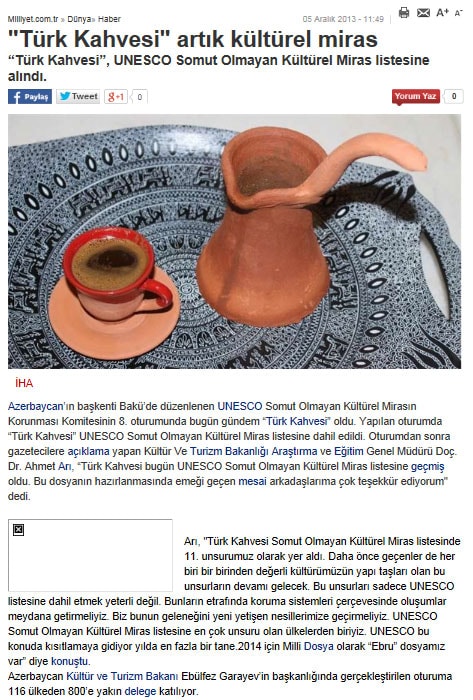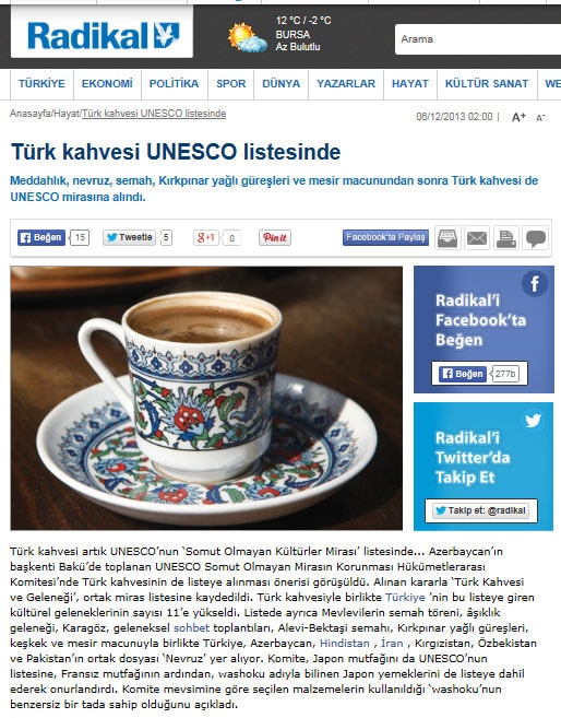Türk kahvesi UNESCO listesinde - 6 Aralık 2013 - Radikal