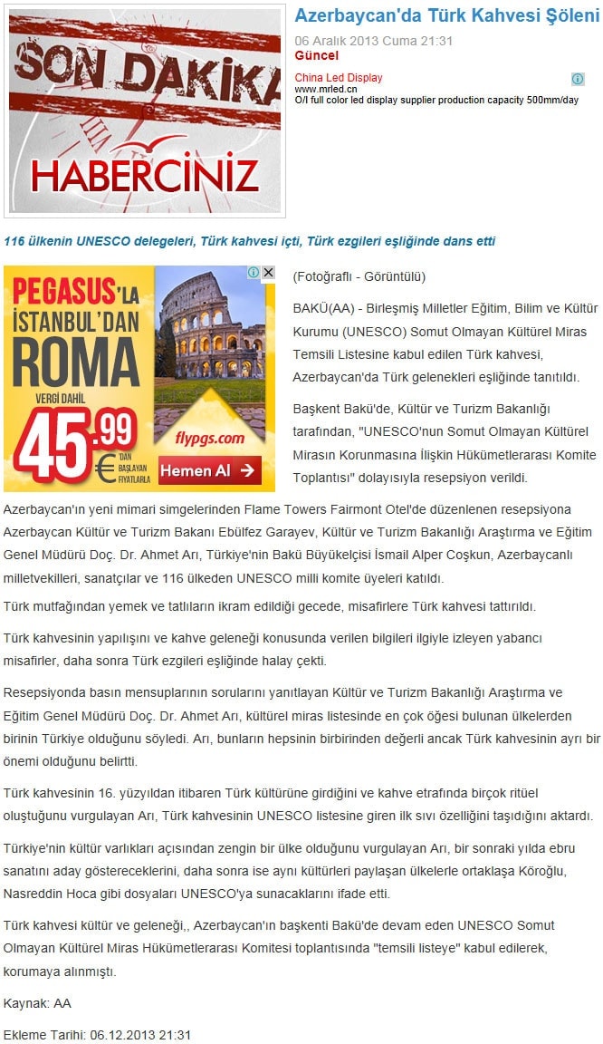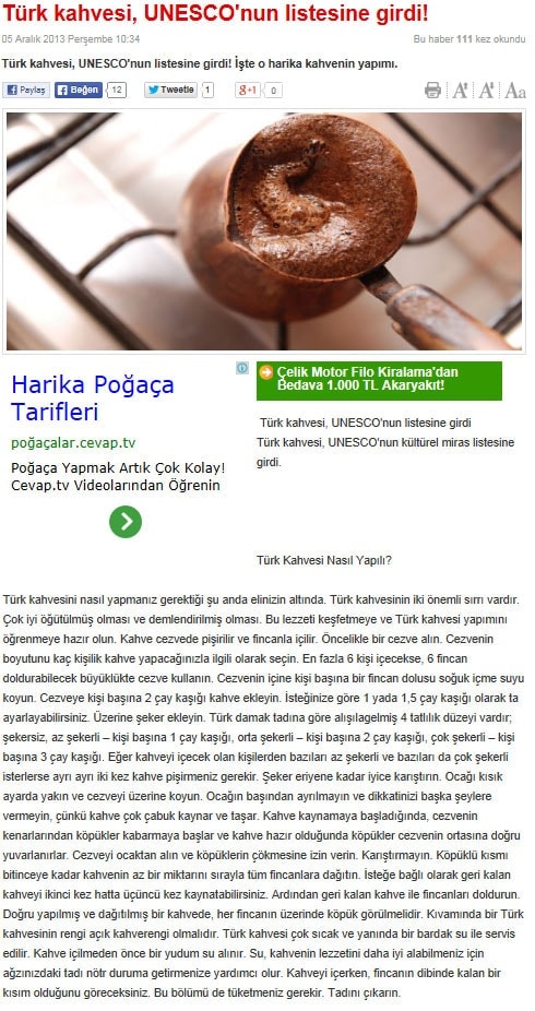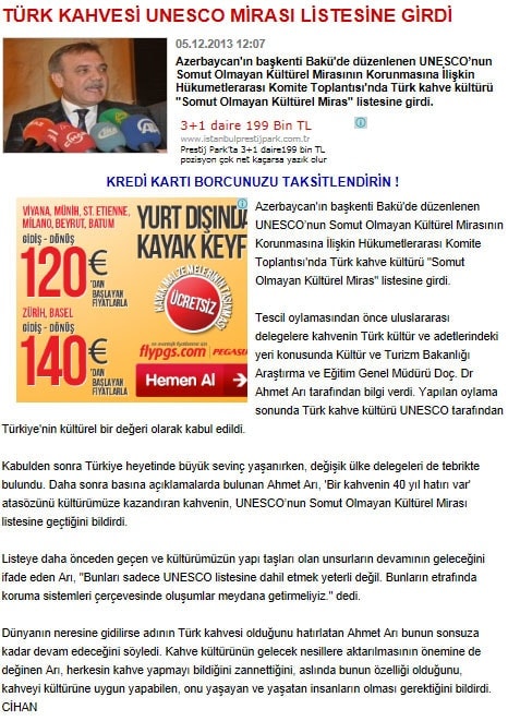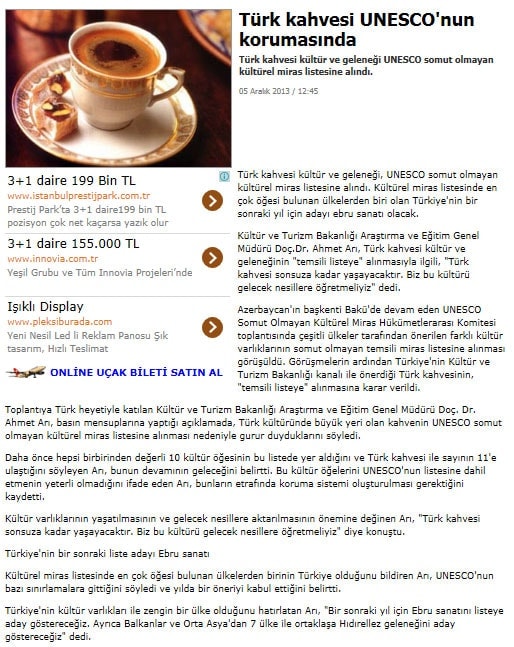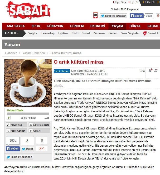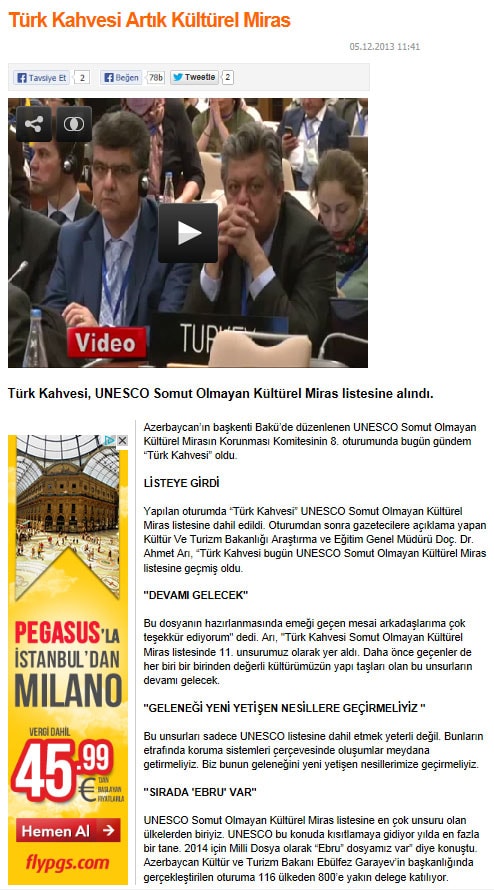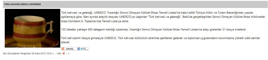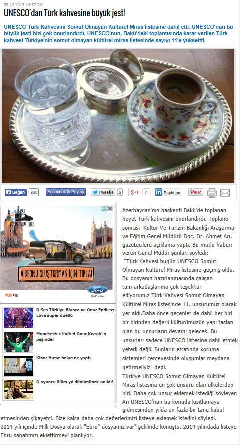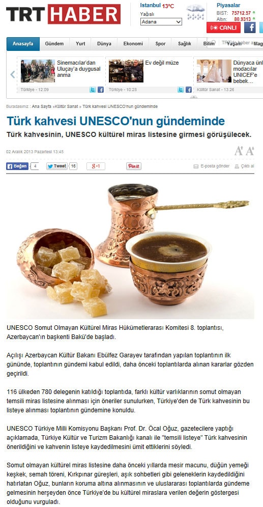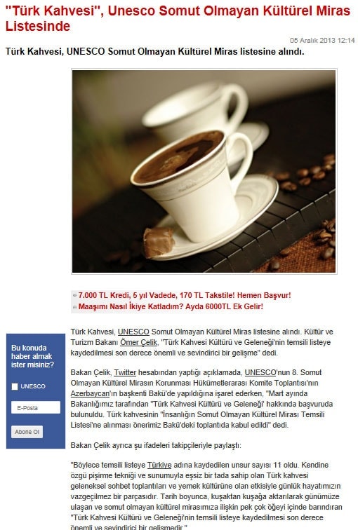 Türk kahvesi UNESCO listesinde - 6 Aralık 2013 - Radikal