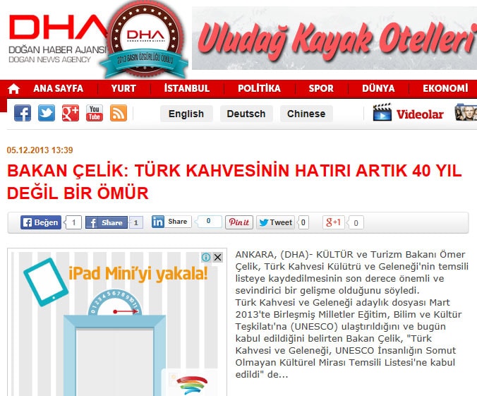 Türk kahvesi UNESCOnun listesine girdi - 5 Aralık 2013 - Elazığ Haberi