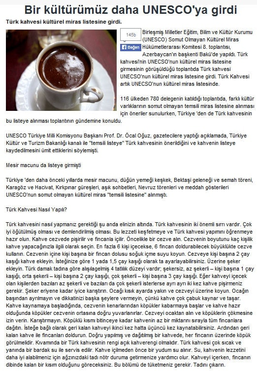 Unescodan Türk Kahvesine Büyük Jest - Spothaber.com